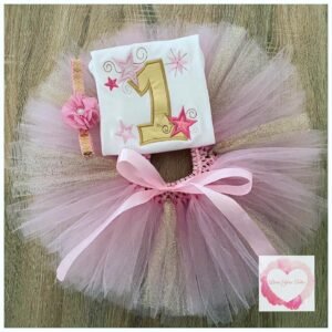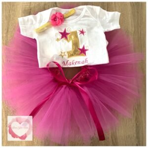 Embroidered fuchsia 1st birthday star tutu set