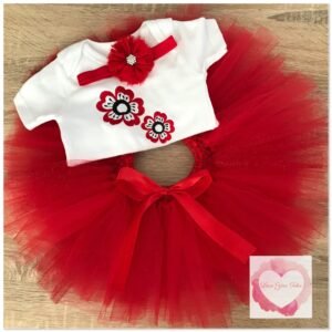 Embroidered glitter poppy tutu set