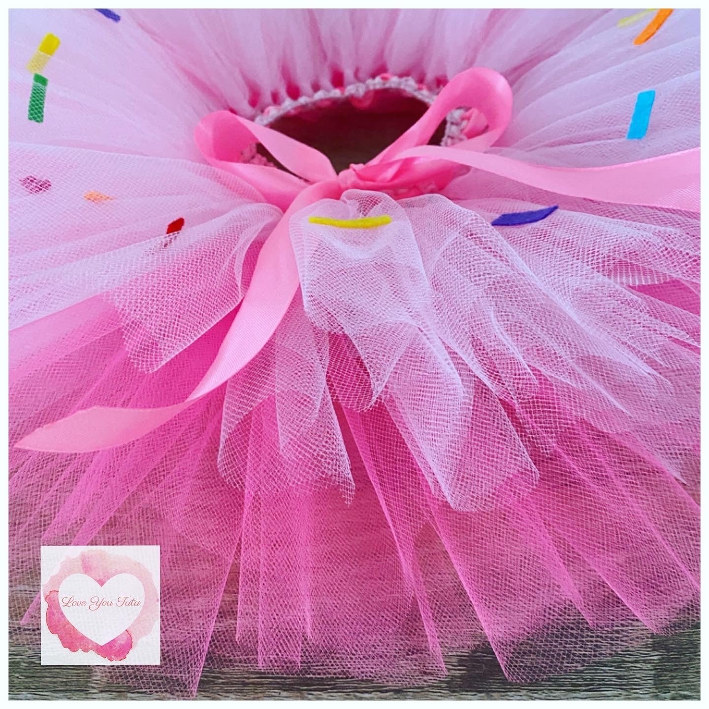 Felt sprinkles hand placed at random, tutu is shorter length on the top layerÂ