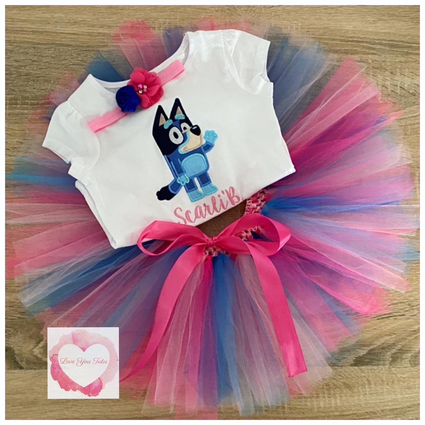 Sold By: AUSSIEMADEHUB SKU: 4498394251363-embroidered-bluey-pink-tutu-set Category: