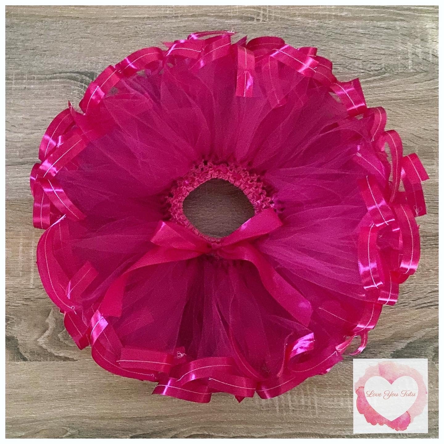 Sold By: AUSSIEMADEHUB SKU: 6690640330928-fuchsia-ribbon-trimmed-short-tutu-skirt Category: