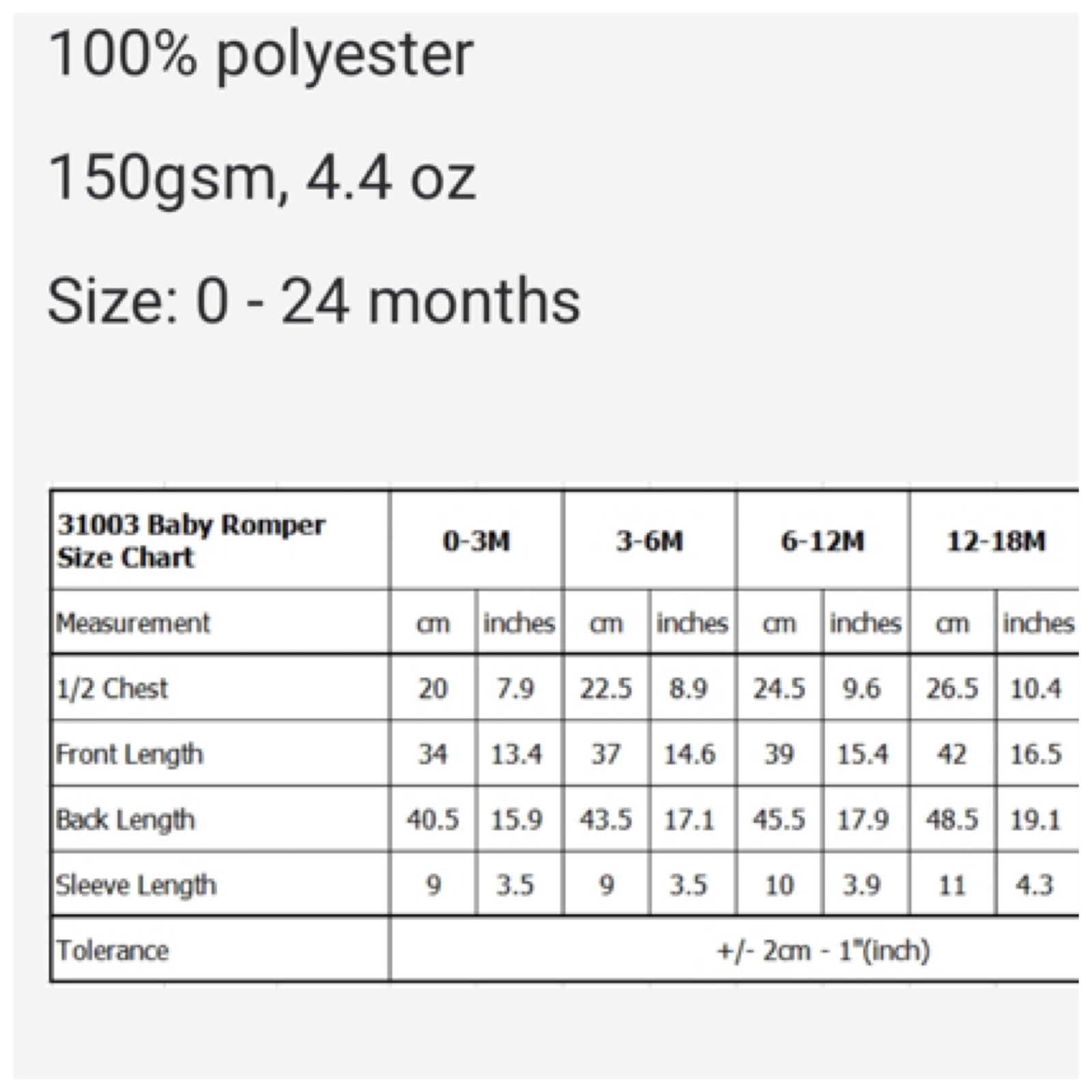 Our sublimation blanks are a generous make for the onesies but for tee’s they and go up in 2’s from 2 please refer to the size chart for correct measurements