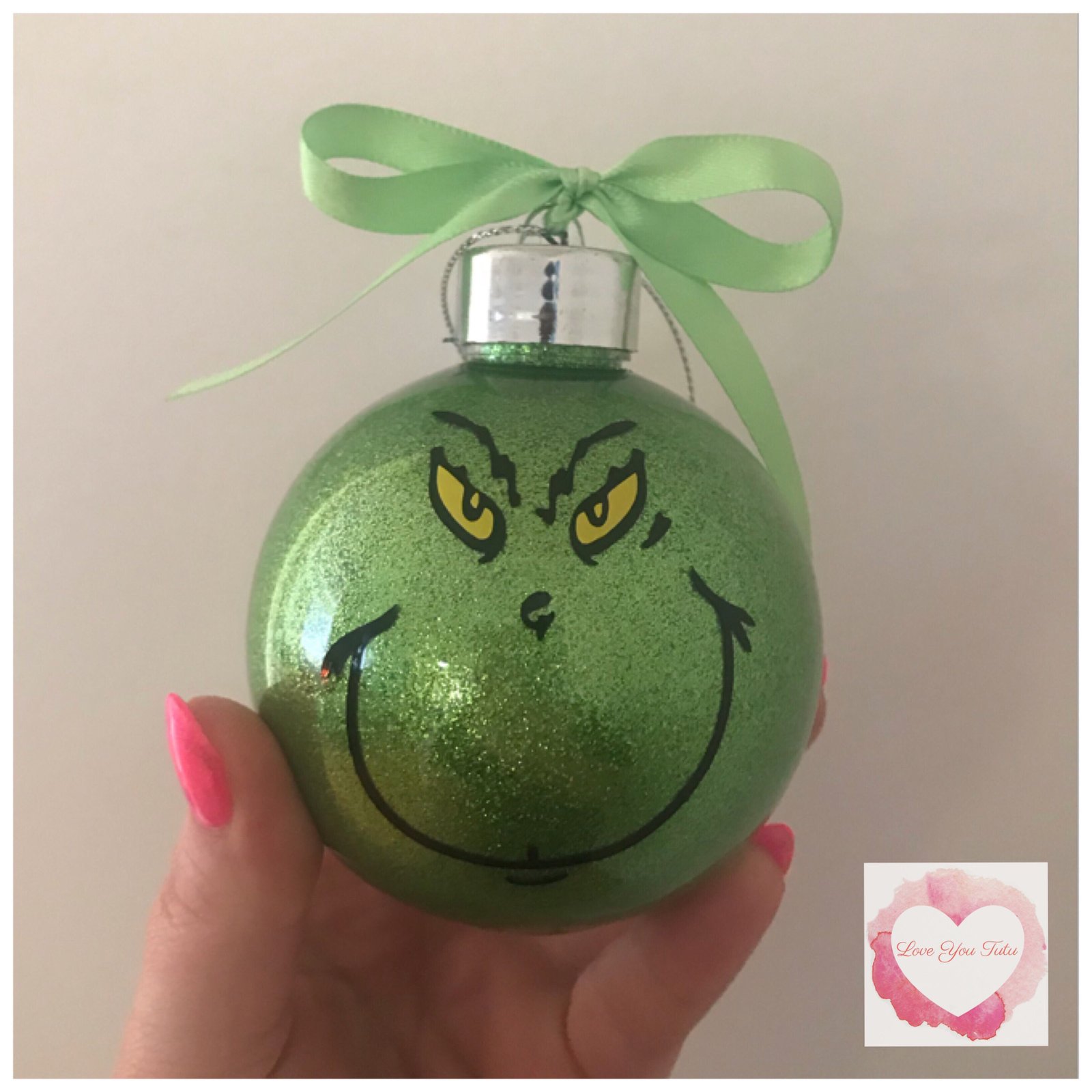 Bauble is 8mm & hand glittered